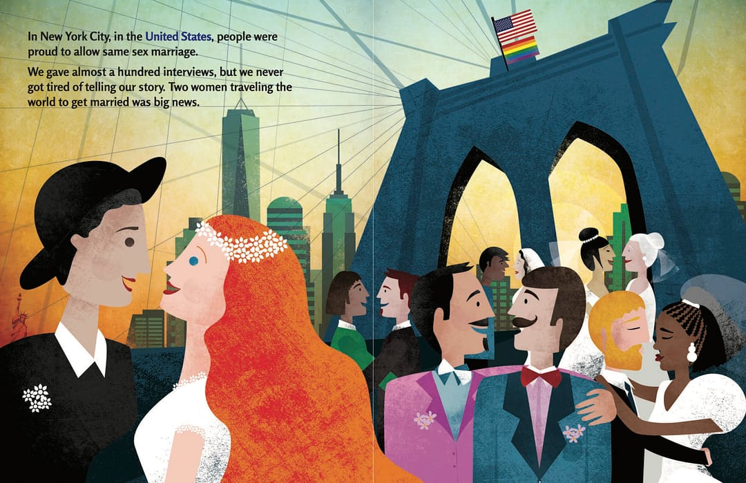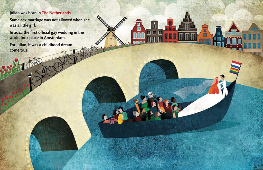 Fleur and Julian travel and get married in 14 of the 28 countries that legalized same-sex marriage. In the book they are learning the fascinating traditions, customs and peculiarities surrounding marriage in each country. A resource page at the back of the book provides information on same-sex laws and LGBTQ+ organizations in each of the countries.
